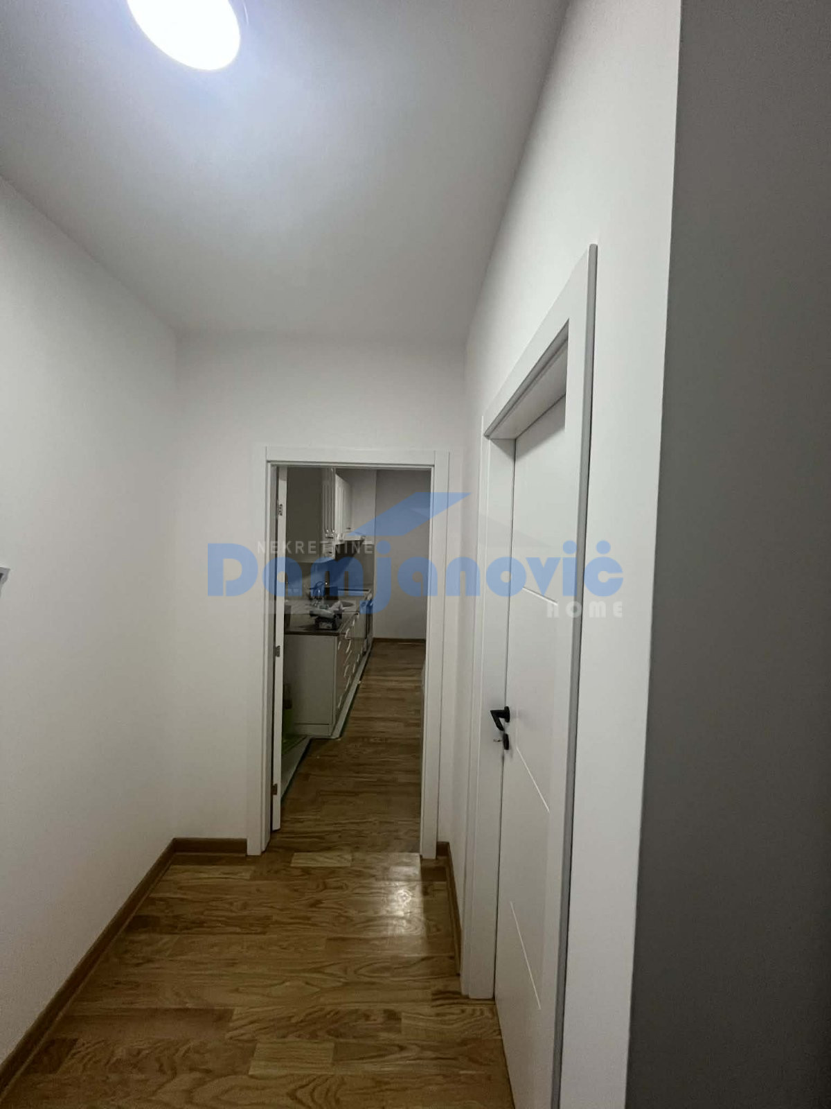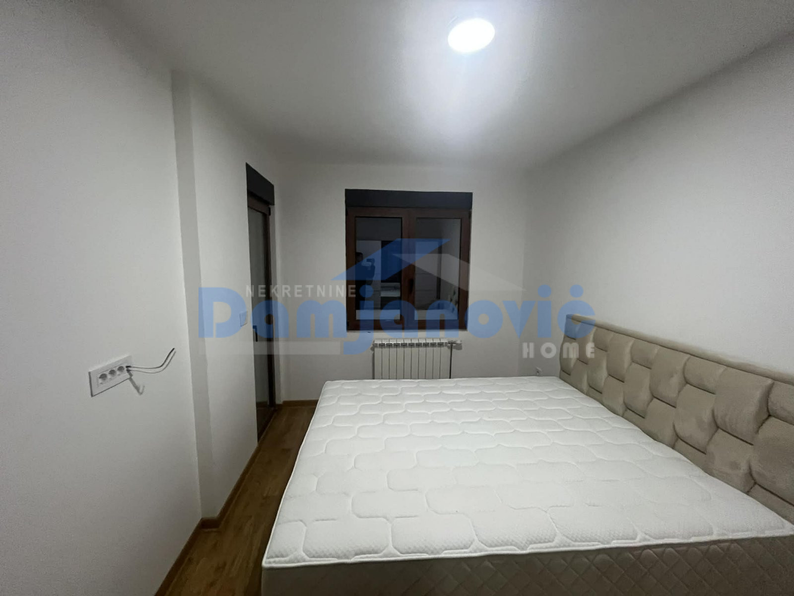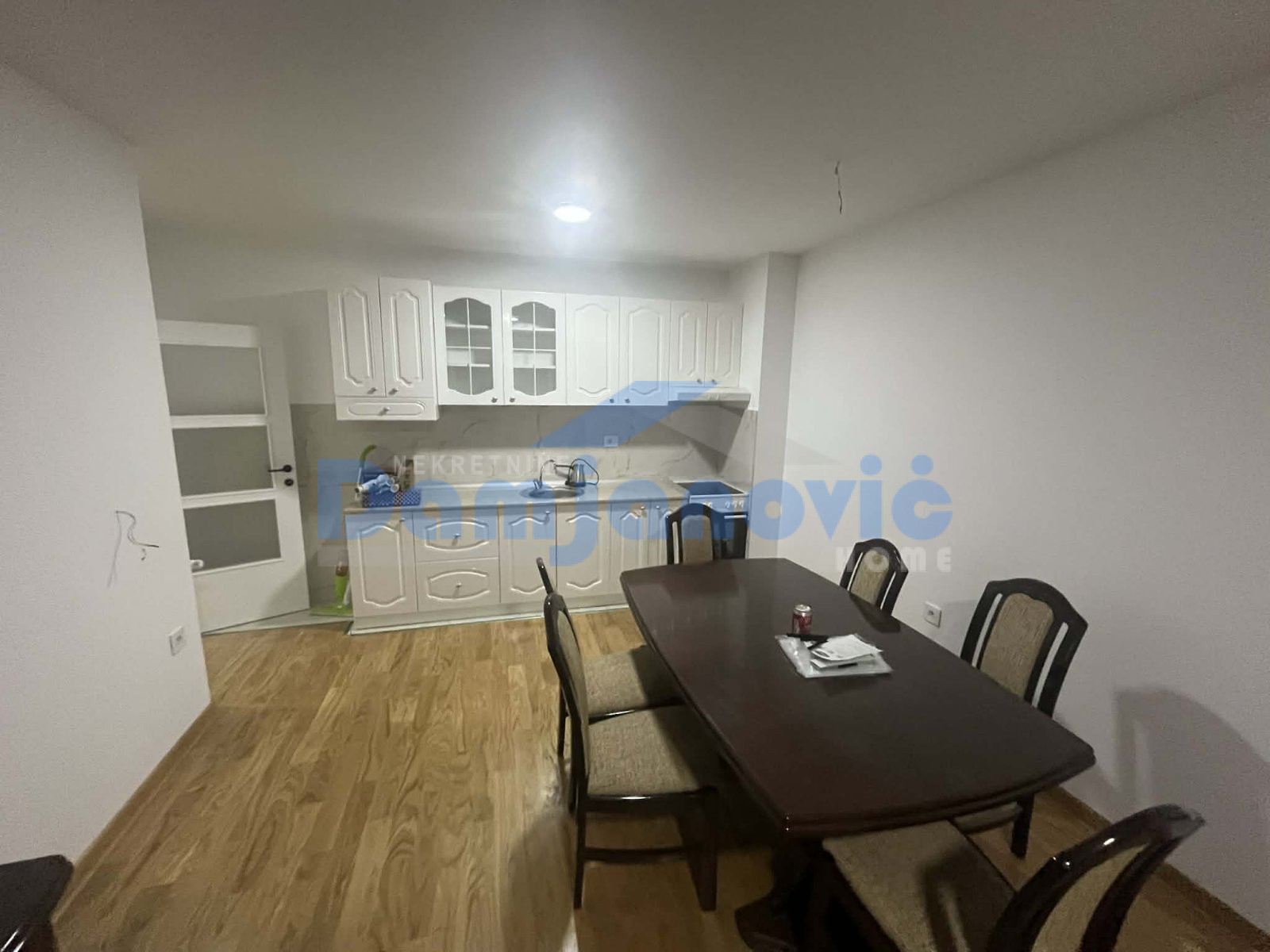 Nov neuseljavan, kompletno namešten stan.Nalazi se na trećem spratu.Sastoji se od predsoblja, dnevnog boravka sa kuhinjom, spavaće sobe, dečije sobe, lođe i kupatila.Uz stan je obezbeđeno parking mesto.