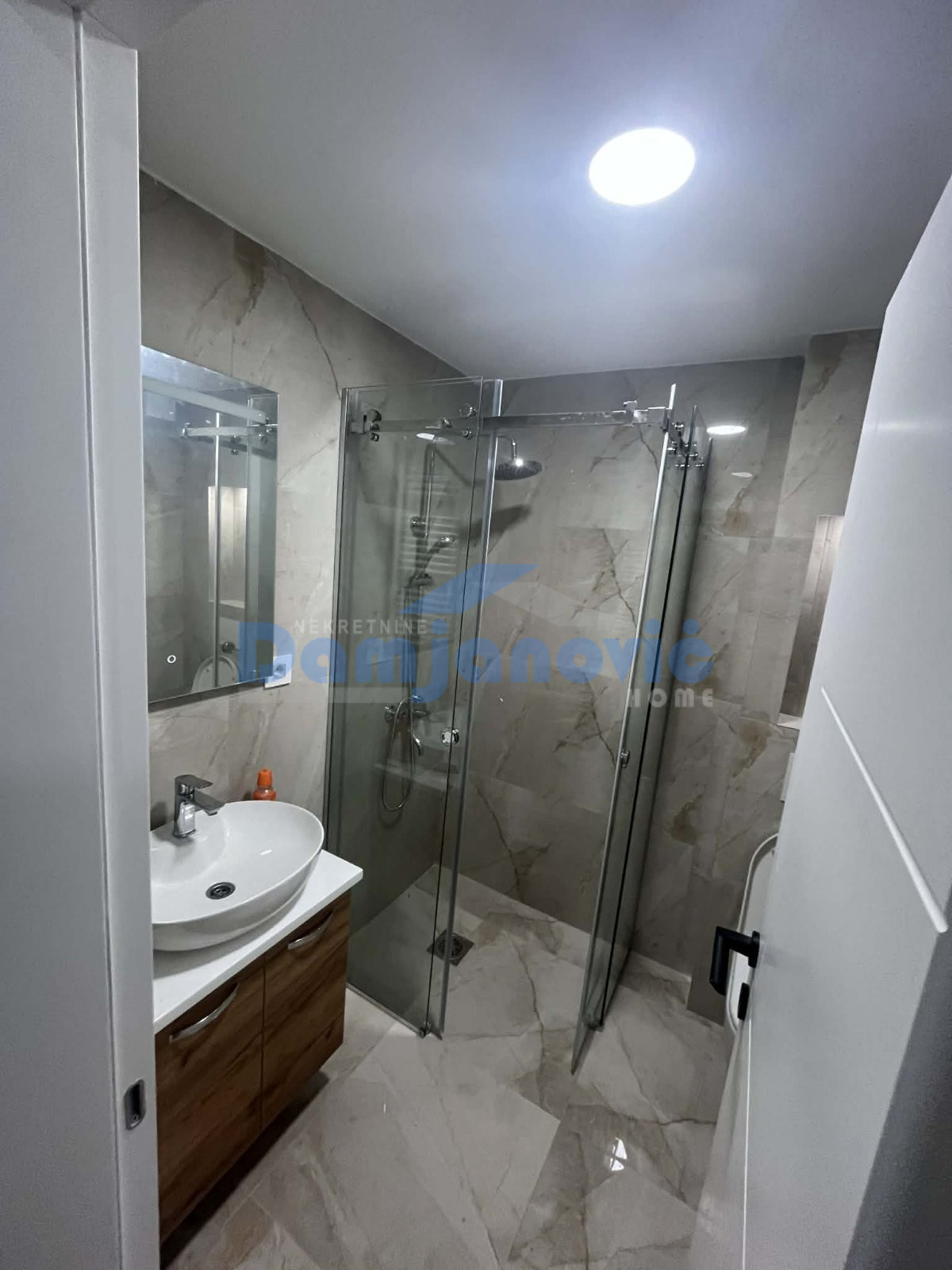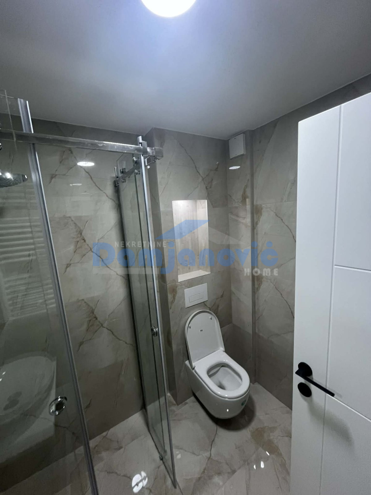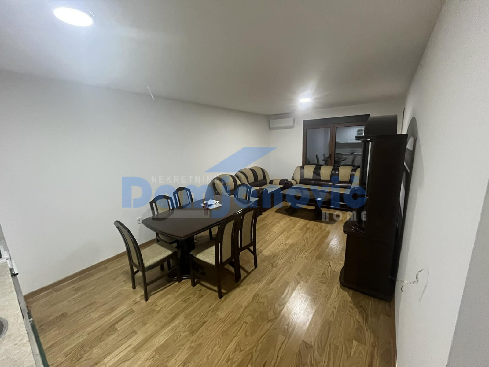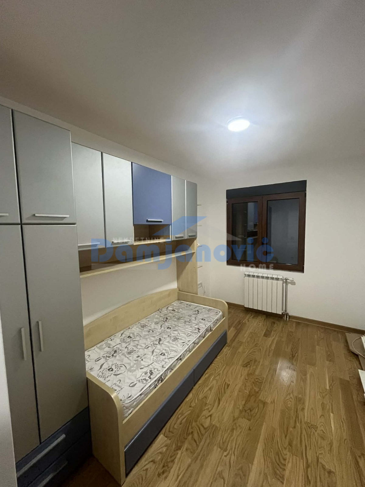 Nov neuseljavan, kompletno namešten stan.Nalazi se na trećem spratu.Sastoji se od predsoblja, dnevnog boravka sa kuhinjom, spavaće sobe, dečije sobe, lođe i kupatila.Uz stan je obezbeđeno parking mesto.