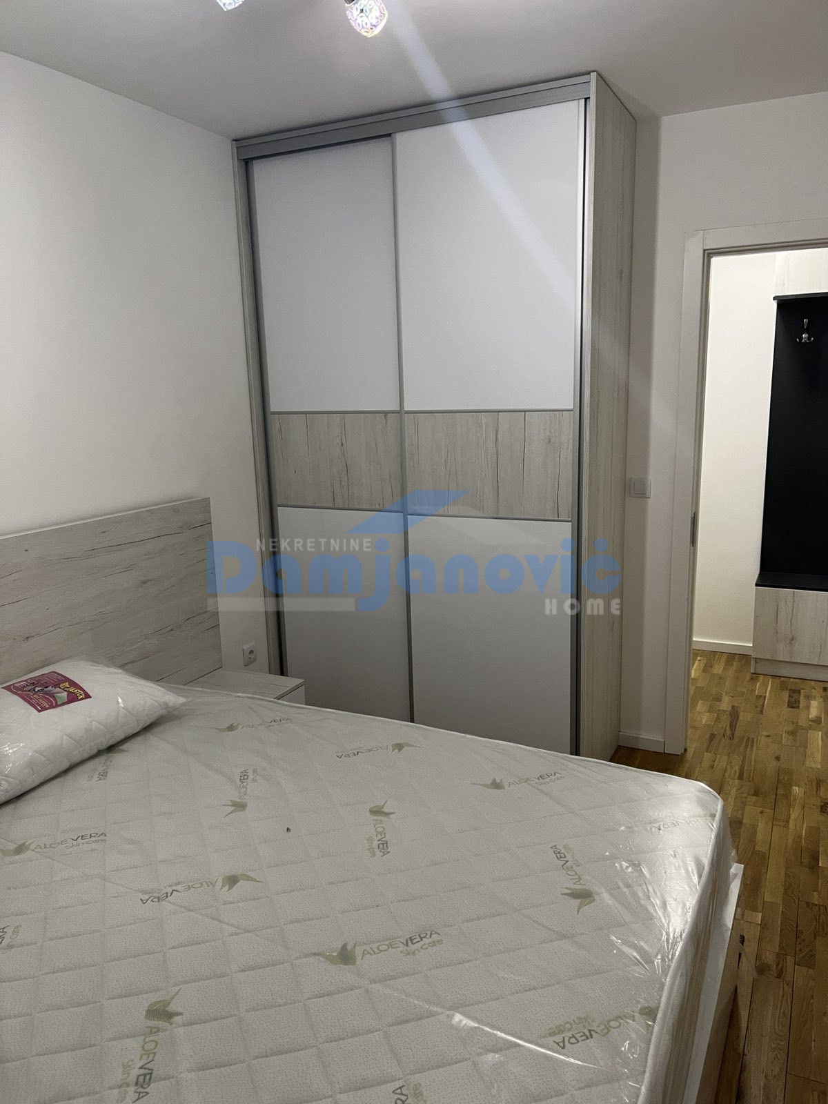 Odličan stan u novijoj zgradi.Kompletno je opremljen.Postoji mogućnost korišćenja garažnog mesta uz doplatu od 70 evra mesečno.Poseduje dve inverter klime.