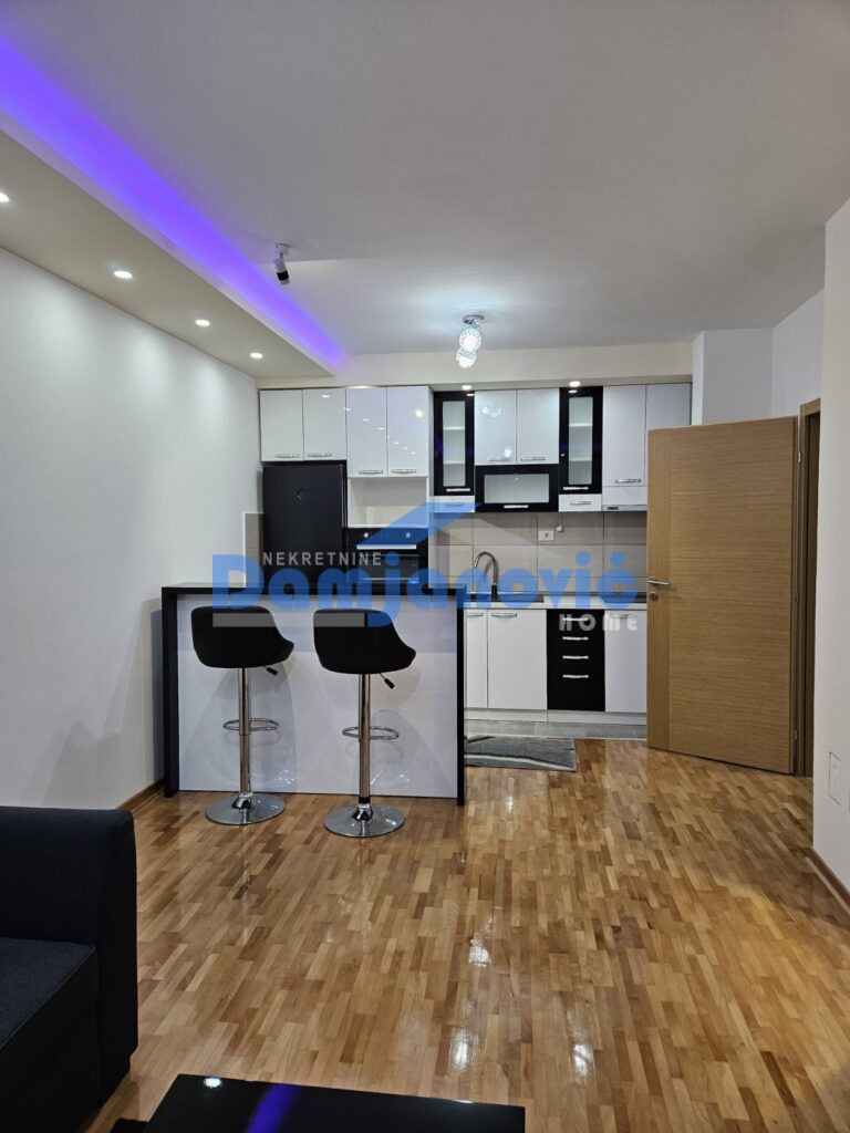 Odličan, komforan, kompletno namešten stan.Nalazi se u novom kompleksu zgrada u Zetskoj ulici.Sastoji se od dnevnog boravka sa kuhinjsko- trpezarijskim delom, spavaće sobe, i kupatila.Stan ima sopstveno Etažno grejanje.